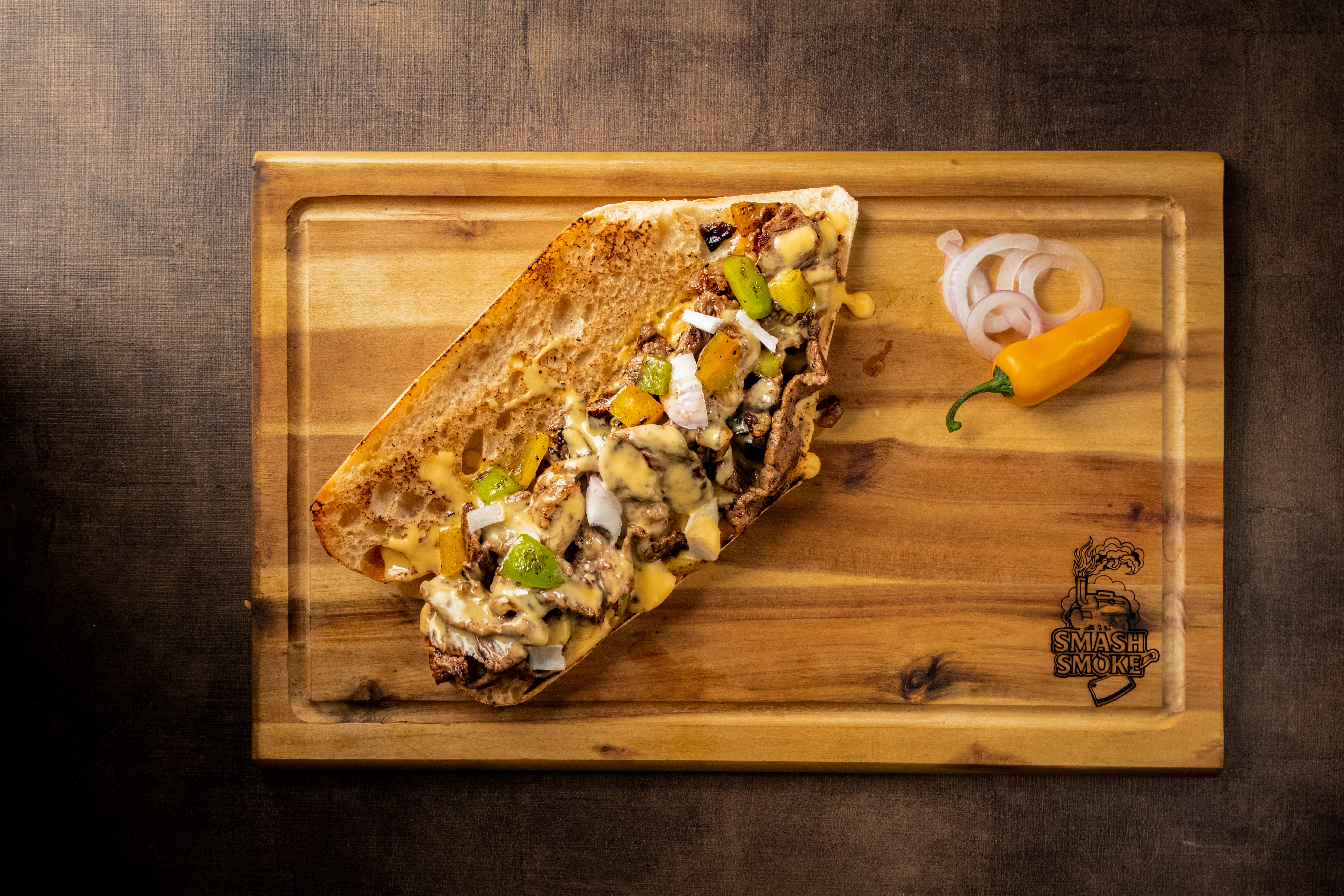 Pri nas verjamemo v počasno pripravo in bogat okus. Naš brisket se v smokerju pripravlja kar 14 ur, pulled pork pečemo osem ur, rebrca pa pečemo tako dolgo, da postanejo popolno mehka in sočna. Vsak kos mesa je skrbno izbran in pripravljen z občutkom za pristni BBQ. Poleg dimljenih specialitet pripravljamo tudi sočne 100% goveje smash burgerje, bogate Philly CheeseSteak sendviče ter druge hišne dobrote iz najkakovostnejših sestavin. In ker je vsak obrok najlepše zaključiti z nečim sladkim, vas razvajamo z raznimi sladicami ter kremastim točenim sladoledom. Smash & Smoke ni le restavracija – je doživetje pristnega okusa dima in kakovosti. Želimo vam prijetno druženje in dober tek